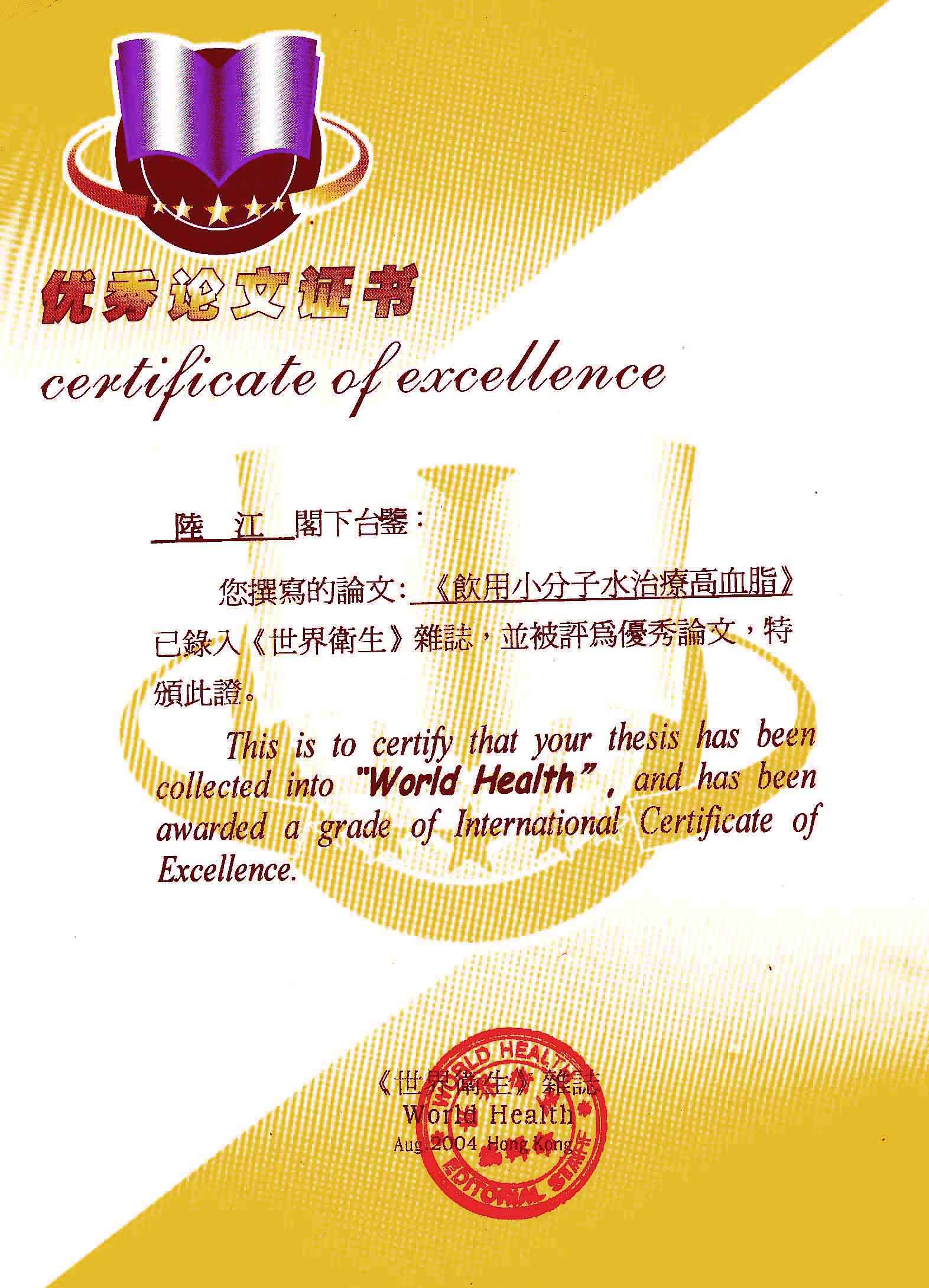 一、創造了在家在職場使用方便的微小分子團水器具。在世界上首先用此理療方法,大規模地成功地逆轉和消除動脈粥樣硬化,確實祛俆高血壓和冠心病與糖尿病,使患者恢復動脈和心臟及胰島的健康,可消除因細胞缺水使器官衰弱而形成多種器官的缺水性病癥,并使健康人可預防和減緩動脈粥樣硬化,減少心腦血管病,具有重大的社會經濟和戰略意義。